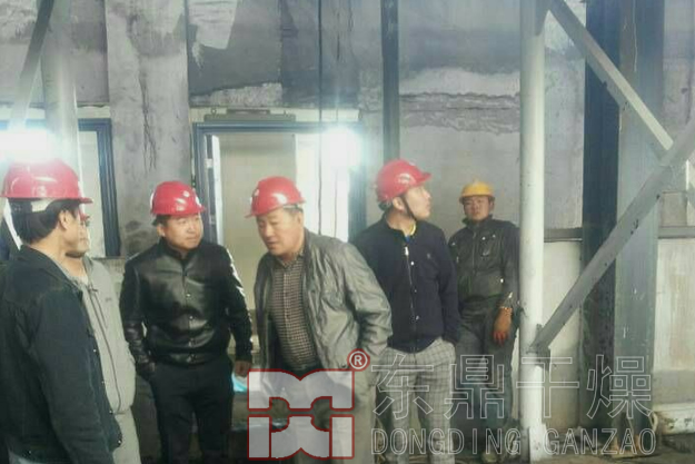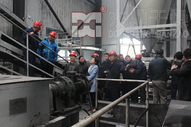 2014年11月25日上午,富力地產集團張力董事長、力量礦業能源有限公司楊總、力量煤業有限公司顧總一行在大飯鋪選煤廠馬廠長、鄭州市東鼎干燥設備有限公司王總的陪同下來到大飯鋪選煤廠項目現場。在聽取了礦上負責人對大飯鋪洗煤廠及配套煤泥干燥工程的建設運營介紹后,張力先生一行走進煤泥干燥車間參觀了整個煤泥干燥工程生產系統,對煤泥干燥車間的生產運行狀況進行詳細了解,看到煤泥烘干機已經正常投入生產運營張力先生對各項工作的高效進展表示滿意,并就今后如何進一步利用和發揮好該工程的作用提出了更高要求。
