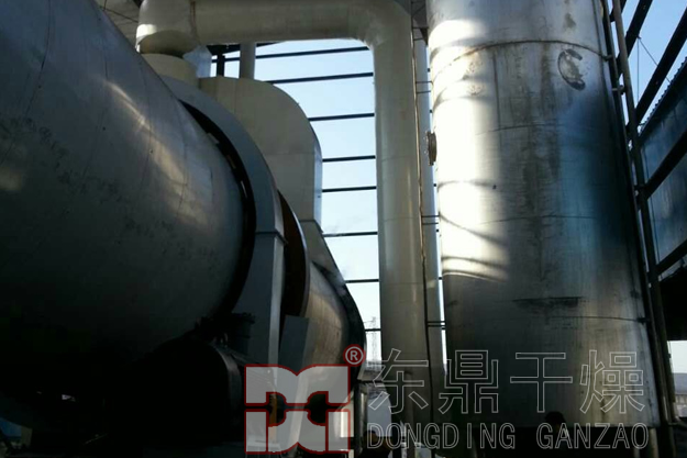 該工程采用東鼎新一代高溫順流滾筒煤泥烘干提質技術。由原料裝載系統(包括打散喂料機、入料帶式輸送機等,確保均勻連續給料)、燃燒供熱系統、干燥脫水系統(選用密封給料箱、螺旋推進器、滾筒干燥機、排料箱等設備,完成高水分物料與高溫熱介質的質熱交換)、環保除塵系統(選用旋風除塵器、濕式除塵器、引風機等設備將尾氣經初步處理后,送入集中除塵系統)、 配電測控系統(選用成套配電裝置、就地箱、溫控傳感器等電氣設備實現干燥系統的操控及監控)、產品輸送系統六大模塊構成,系統具有以下特點:1、干燥速度快,處理量大,處理效率高;2、全程封閉,系統配有可靠的防爆系統,安全可靠;3、系統高效集成,占地面積小全自動控制,現場無人值守;4、采用新型除塵裝置,排放達標。